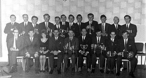 Photographed at one of the evenings are members receiving their trophies from F1 champion Graham Hill, seated in the front row, fourth from left. © Berwick Record Office, BRO 1944-1-4417-58.